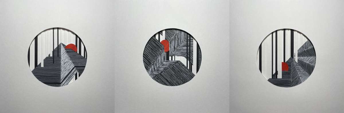 Paper, sunboard, ink, alcohol marker. Series of 3 - 21 x 21 cm (each panel.)