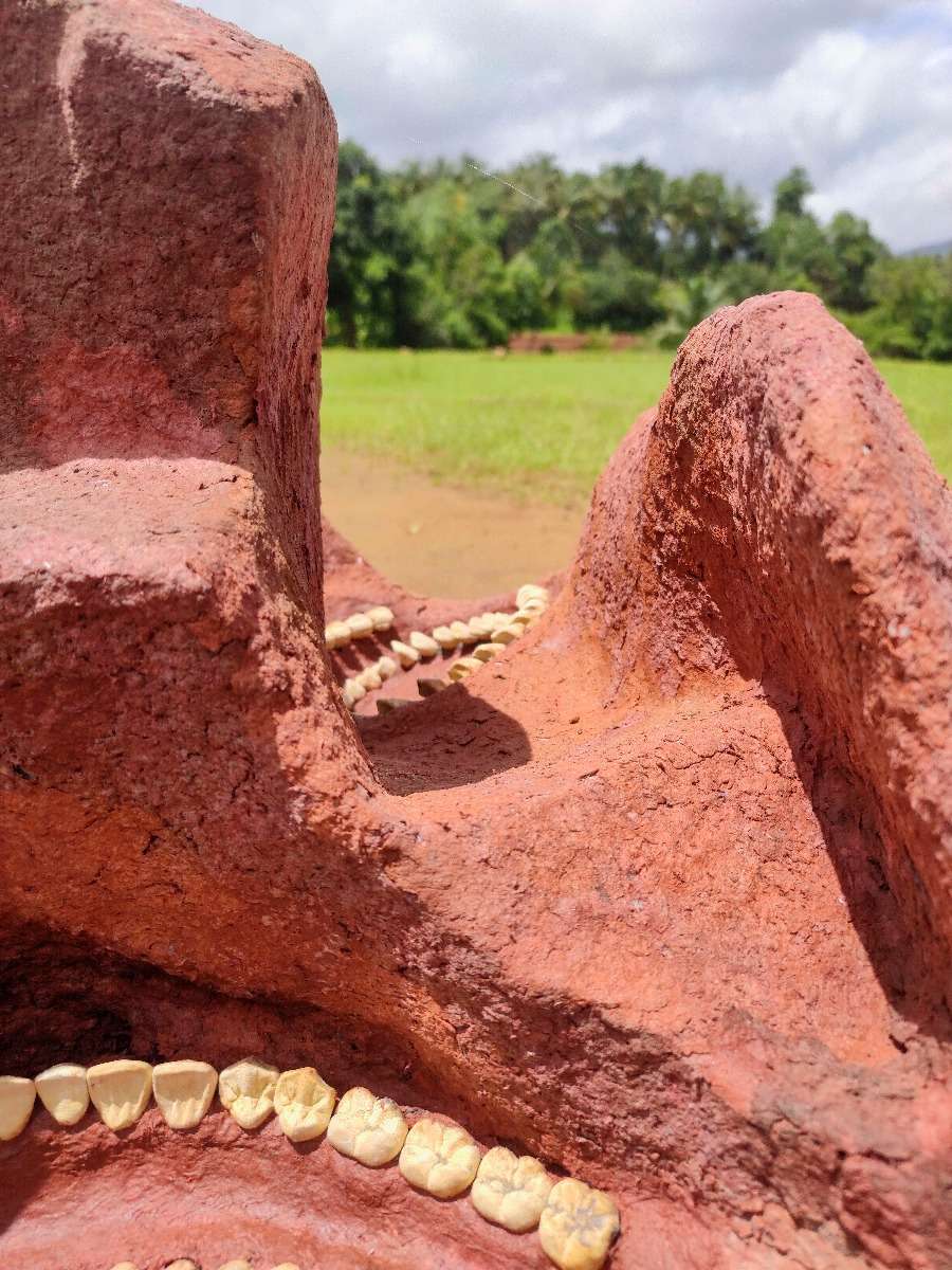 "...The rows of teeth speak of the extraction from these hills and how a capitalistic world feeds off on their resources. The colour red represents richness in the soil and at the same time blunder, death or murdering of trees. Like an infected gum disease, the greed and violence spreads across the hill."